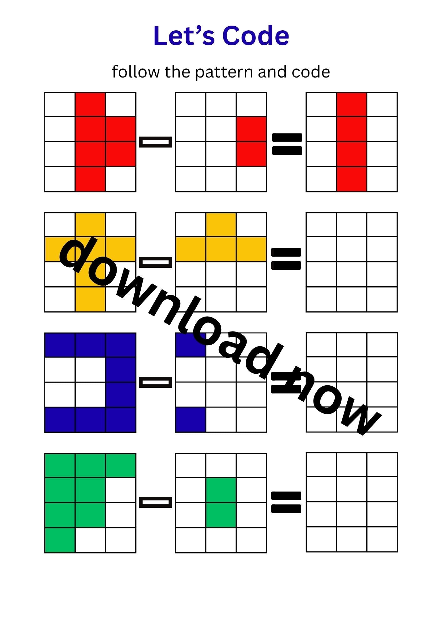Introduce kids to early coding skills and math at the same time! With Letβs Code: Patterns with Addition & Subtraction, children follow coding-style sequences while solving simple math problems to reveal the correct next step in the pattern.